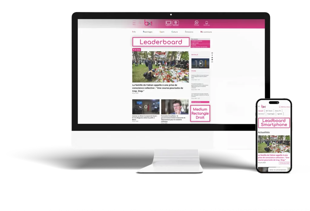 Le bannering vous donne la possibilité d’être visible sur notre site www.bx1.be. Il est généralement utilisé pour faire passer un message court et rapide. En un seul regard votre information est transmise au spectateur, qui peut cliquer sur le lien associé afin d’être redirigé vers la page que vous souhaitez. Cette solution peut s’utiliser en complément d’une campagne TV ou radio, ou spécialement pour les adeptes du digital. Nous pouvons vous proposer des dizaines de milliers d’impressions, géolocalisées sur la Région Bruxelles-Capitale évidemment.